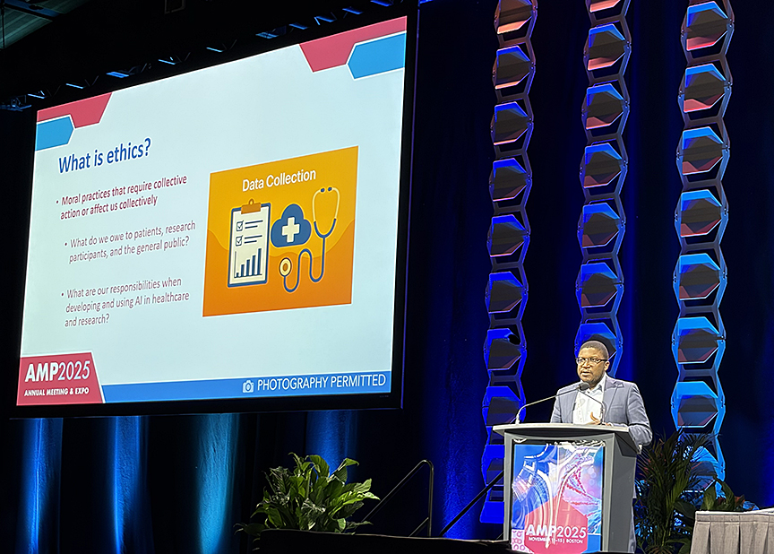 Pathologists must examine certain assumptions behind artificial intelligence (AI) systems—particularly the belief that better performance requires ever-larger data sets—and consider how data collection and annotation shape the clinical insights these tools provide, said Takunda Matose, MBe, PhD. In a plenary lecture Friday morning at the Association for Molecular Pathology’s annual meeting in Boston, Dr. Matose emphasized that creating AI systems that improve patient care will require deliberate and thoughtful oversight from those who develop and use them.