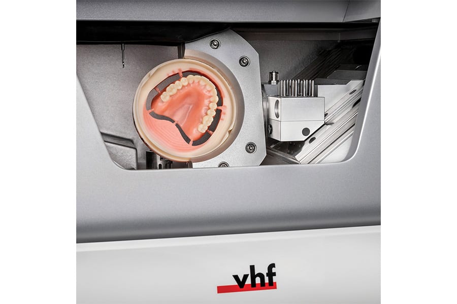 vhf mills allow you to achieve best-in-class results with the combination of fine-tuned German engineering and industry-leading materials. vhf now offers Overmill Strategies that enable freedom of choice for base and tooth materials up to 40-mm thick. Our mills are also validated for the Ivoclar ivotion monolithic digital dentures.