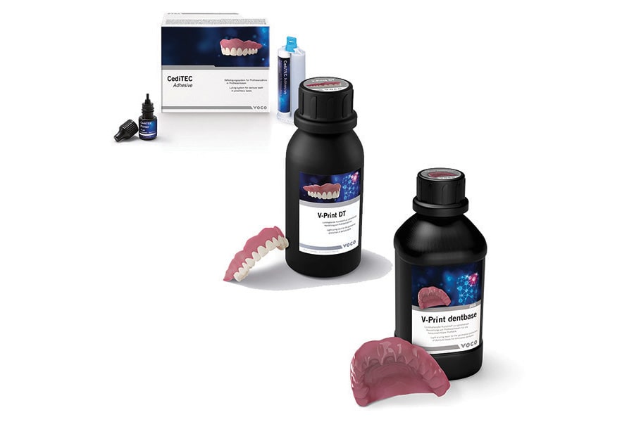 VOCO’s digital denture system combines V-Print dentbase for durable, esthetic denture bases, V-Print DT for esthetic denture teeth, and CediTEC Adhesive for secure bonding—ensuring efficient workflows, accuracy, and long-lasting success.