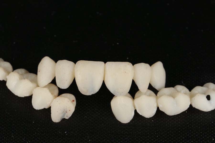 All 28 restorations were milled from low-translucency lithium-disilicate blocks, shade BL3 (IPS e.max® CAD, Ivoclar, ivoclar.com). Attention was given to toolpath selection to minimize internal stress, wall thickness adherence, and preventing microcracks at incisal edges and cervical areas. Primary finishing after milling included removal of milling marks with fine diamond burs, smoothing of any sharp edges, and rounding transitions to reduce chipping risks. Fit was checked on the model to avoid tension.