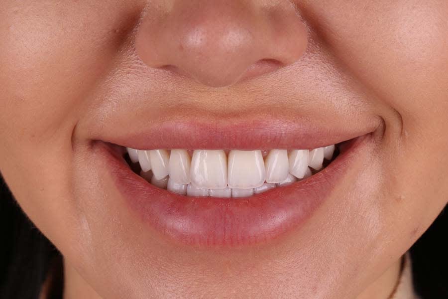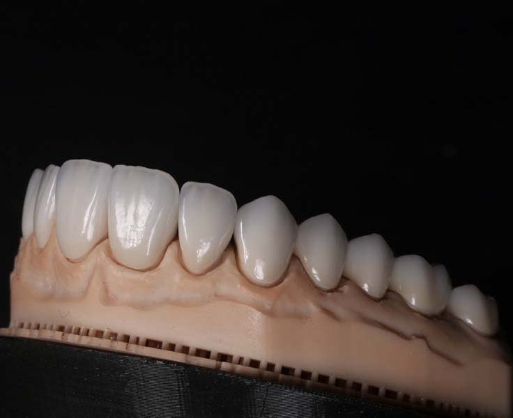 During the provisional phase, clinical adjustments were made, including refining smile line parameters, lip support thickness, phonetic features, and harmony with facial soft tissues. The provisional restorations enabled critical feedback on esthetics and function (Figure 8).10 These adjustments were documented and incorporated into the final CAD design. Final documentation included photographs of prepared teeth (Figure 7), provisional restorations (Figure 9), and gingival contours to communicate with the laboratory and facilitate treatment accuracy.